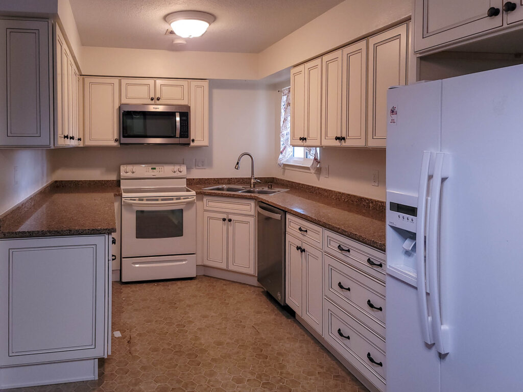 - Project: Custom Kitchen design and installation using Antique White from Highland Collection.